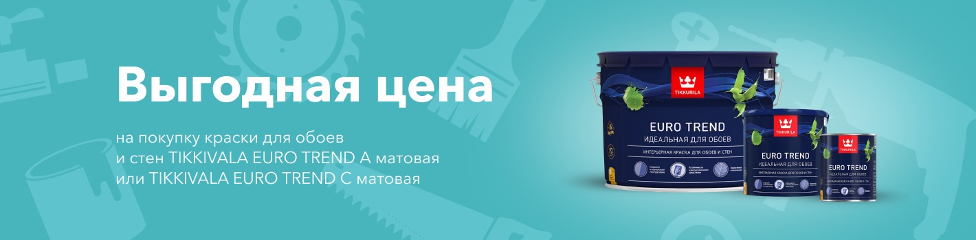 Выгодная цена на покупку краски для обоев и стен TIKKIVALA EURO TREND С матовая, 2,7 л, 9 л или TIKKIVALA EURO TREND А матовая, 0,9 л, 2,7 л, 9 л