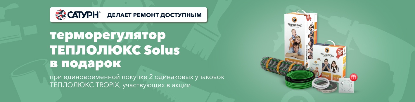 При единовременной покупке 2 одинаковых упаковок ТЕПЛОЛЮКС TROPIX, участвующих в акции, Вы получаете терморегулятор ТЕПЛОЛЮКС Solus в подарок!