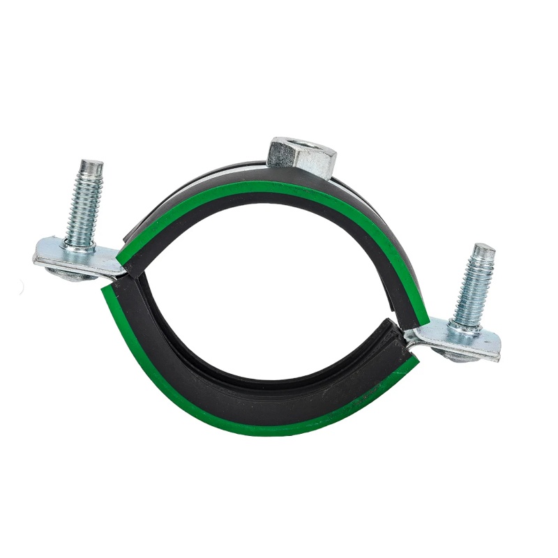 Применяются в системах водоснабжения, отопления, канализации. Хомуты необходимы при монтаже систем трубопроводов на вертикальной или горизонтальной поверхности. Основными задачами являются надежная фиксация системы, уменьшение вибрации, снижение уровня шума и частичная компенсация теплового расширения. Поставляется с резиновым уплотнителем и гайкой.