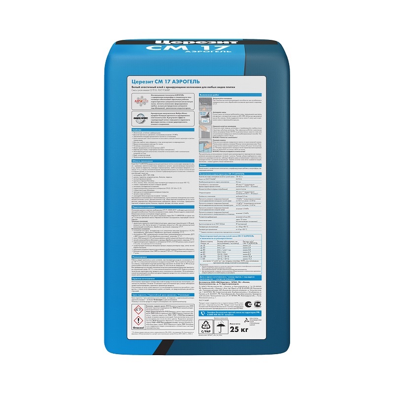 CM 17 Аэрогель - белый эластичный клей с армирующими волокнами для любых видов плитки. Клей СM 17 используется для крепления плиток из всех видов природного камня — мрамора, светлого известняка, травертина, гранита, просвечивающих пород камня и т.д., плиток из терракоты, клинкера и керамогранита, любого размера и формата, в т.ч. свыше 1×1 м, а также стеклянной (кроме зеркальной) мозаики, на стенах и полах внутри и снаружи зданий.