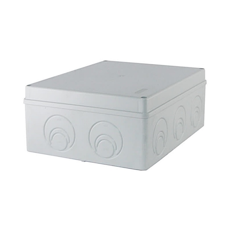 Коробка разветвительная накладная, 240х190х90 мм, 12 вводов, серая IP55 предназначена для: разветвления проводов и кабелей при открытом монтаже, а также для скрытия и дополнительной защиты мест коммуникации.