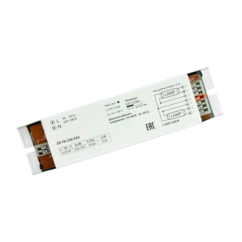 Электронный балласт ЭПРА для люминесцентных ламп Т8 (2х36Вт), 230В, метал.