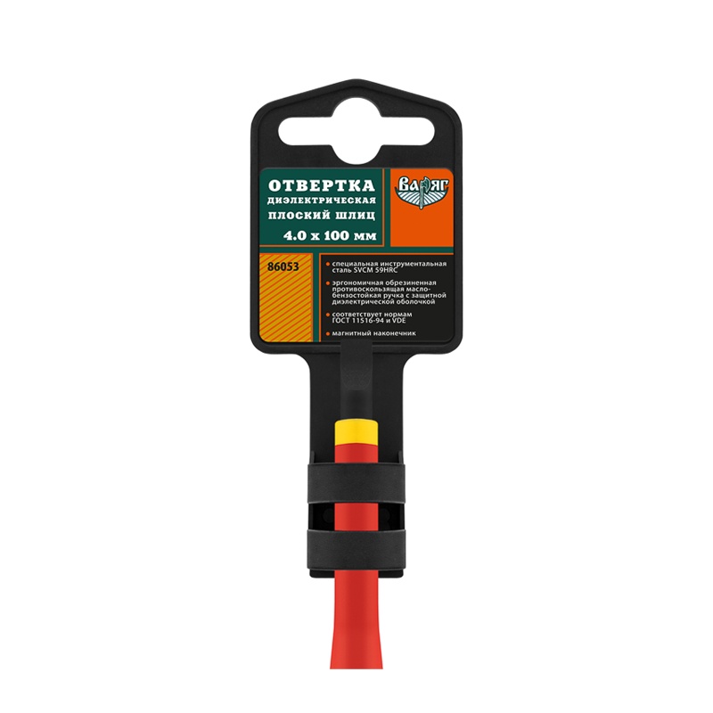 Отвертка Варяг 86053 диэлектрическая 1000В, SL 4х100 мм