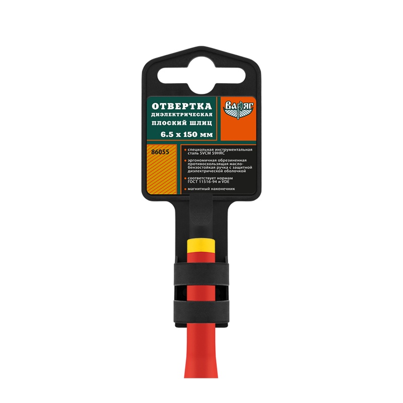 Отвертка Варяг 86055 диэлектрическая 1000В, SL 6,5х150 мм