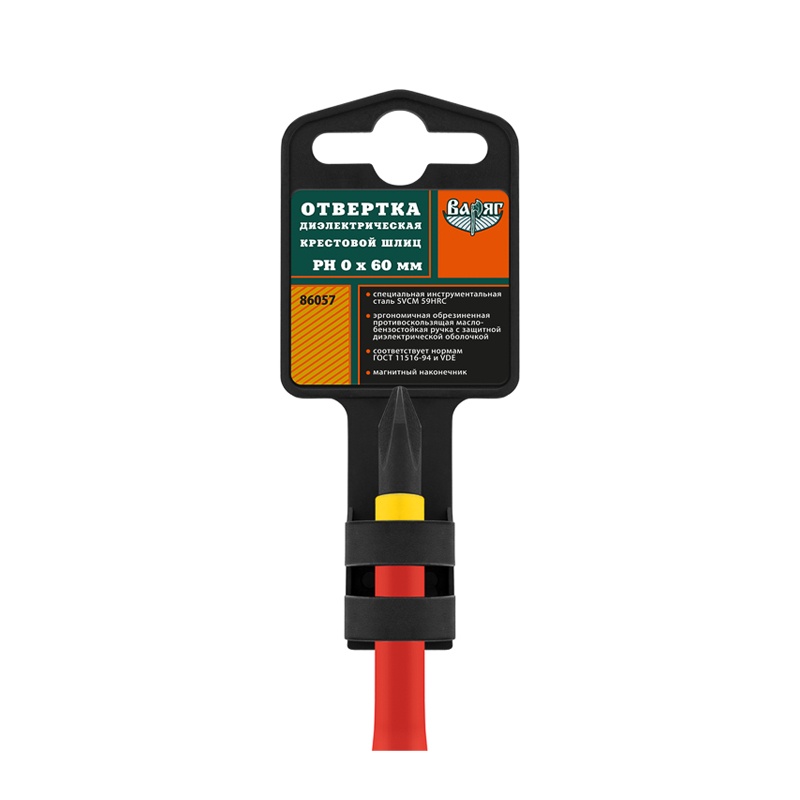 Отвертка Варяг 86057 диэлектрическая 1000В, PH 0х60 мм