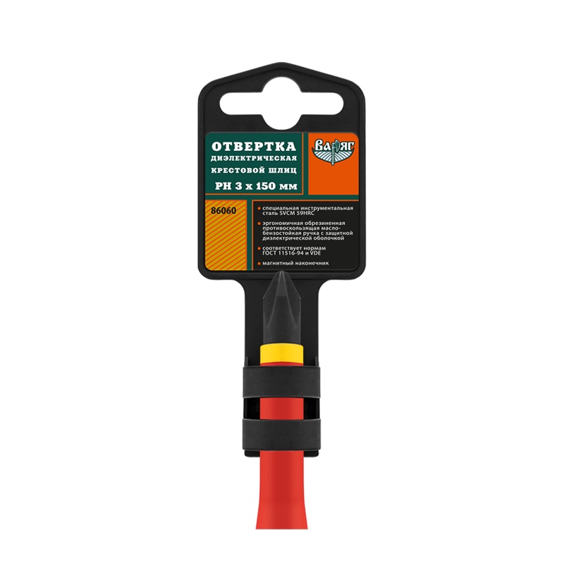 Отвертка Варяг 86060 диэлектрическая 1000В, PH 3х150 мм