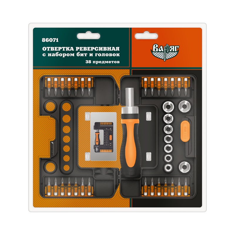 В строительном магазине Сатурн можно купить товар "Отвертка реверсивная Варяг 86071 с набором бит и головок (38 предметов)" по цене от 1554 руб с доставкой за 2 часа по Новосибирску или оформить самовывоз.