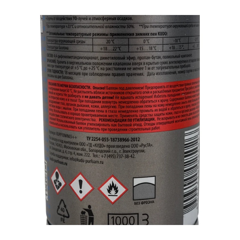Пена полиуретановая монтажная Kudo Proff 65+ Arktika (1 л)