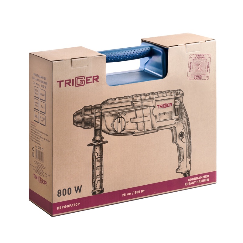 Перфоратор сетевой Trigger 20027, SDS-plus 28 мм 800 Вт 3 режима 3,2 Дж, L кабеля=4 м,кейс