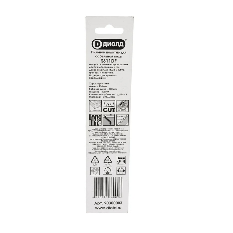 Полотно для сабельных пил Диолд HCS 130х18х1,2 мм, шаг 4,2мм