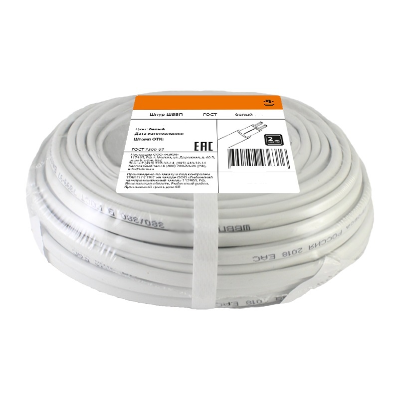 Провод ШВВП 2х0,5 мм², белый (бухта-5 п.м.) ГОСТ 7399-97