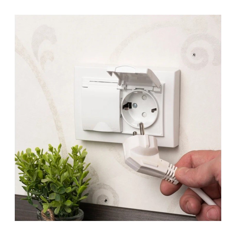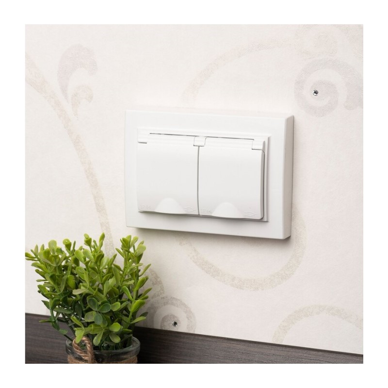 Предназначена для скрытой установки. Розетка 2 гнезда с заземлением и крышкой. Корпус выполнен из ABS-пластика, обеспечивающего прочность и термостойкость изделий, устойчивость к воздействию солнечных лучей. Основание розетки выполнено из негорючего пластика. Защитные шторки защищают отверстия от посторонних предметов. Наличие крышки гарантирует защиту от пыли и воды.