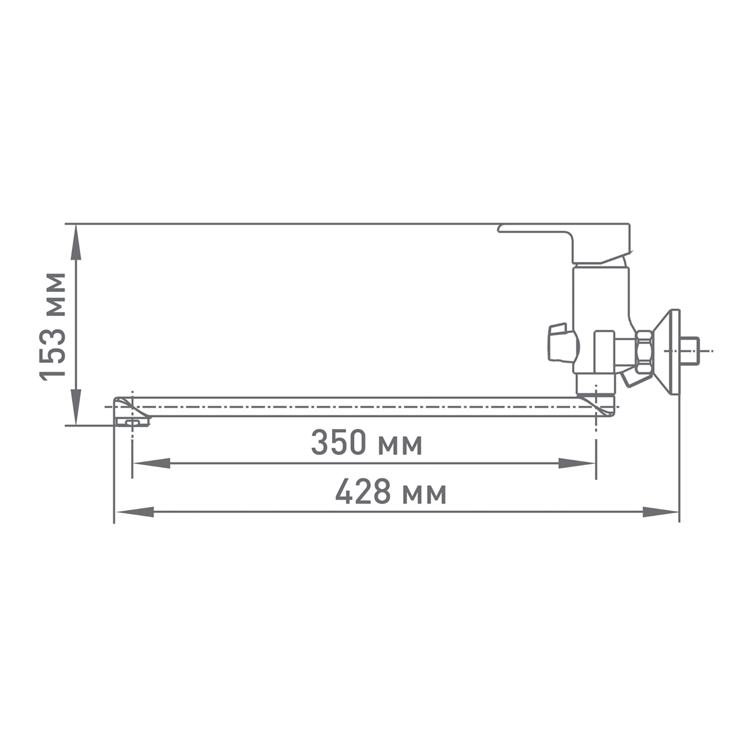 - Излив: Поворотный, длина 35 см, расстояние до точки падения воды 42,8 см