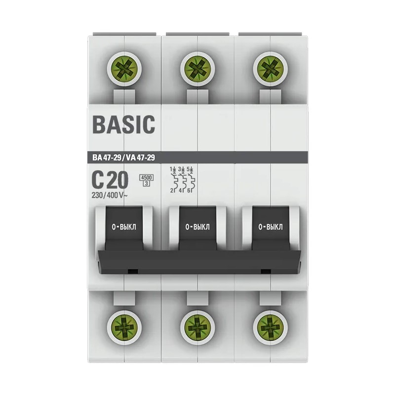 Выключатель автоматический EKF ВА 47-29 4,5кА, С 20А, 3П