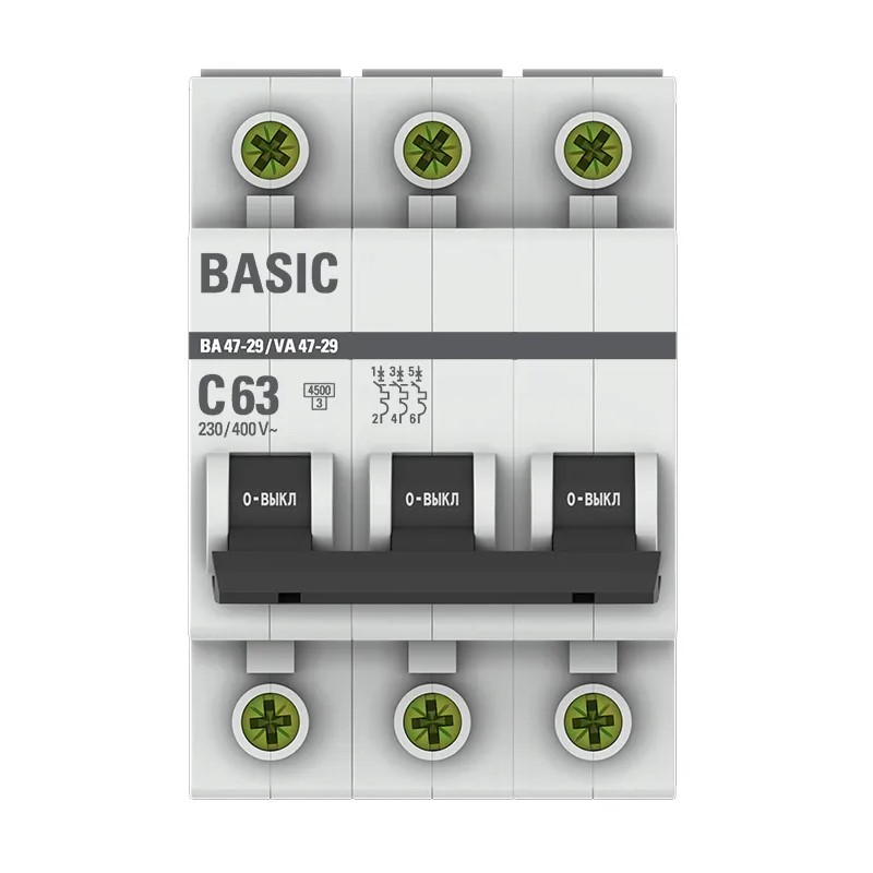Выключатель автоматический EKF ВА 47-29 4,5кА, С 63А, 3П