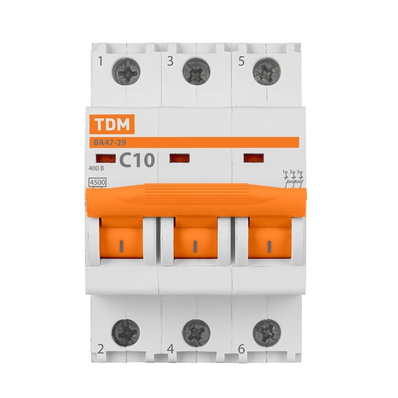 Выключатель автоматический TDM ВА 47-29, 4,5кА, С 10А, 3П