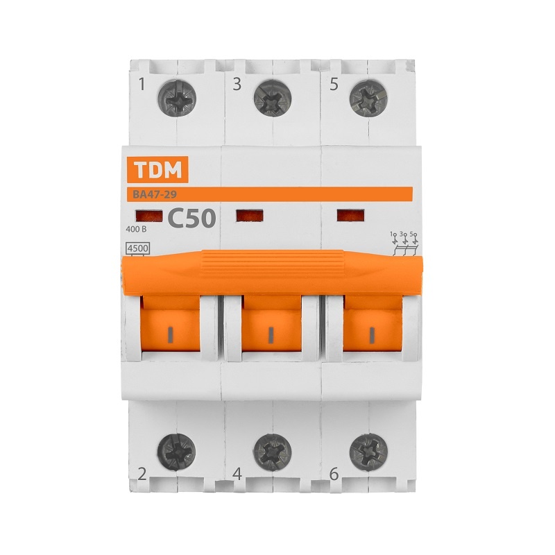 Выключатель автоматический TDM ВА 47-29, 4,5кА, С 50А, 3П